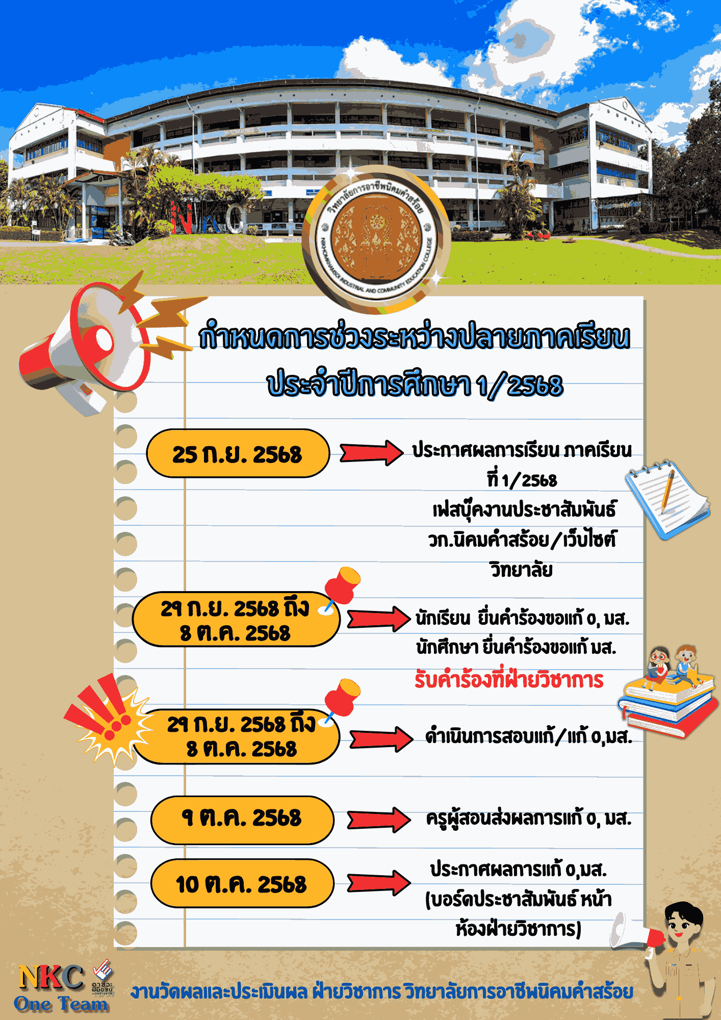 ปฏิทินกำหนดการช่วงระหว่างปลายภาคเรียนที่ 1 ปีการศึกษา 2568