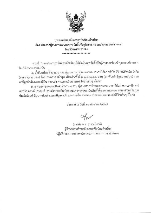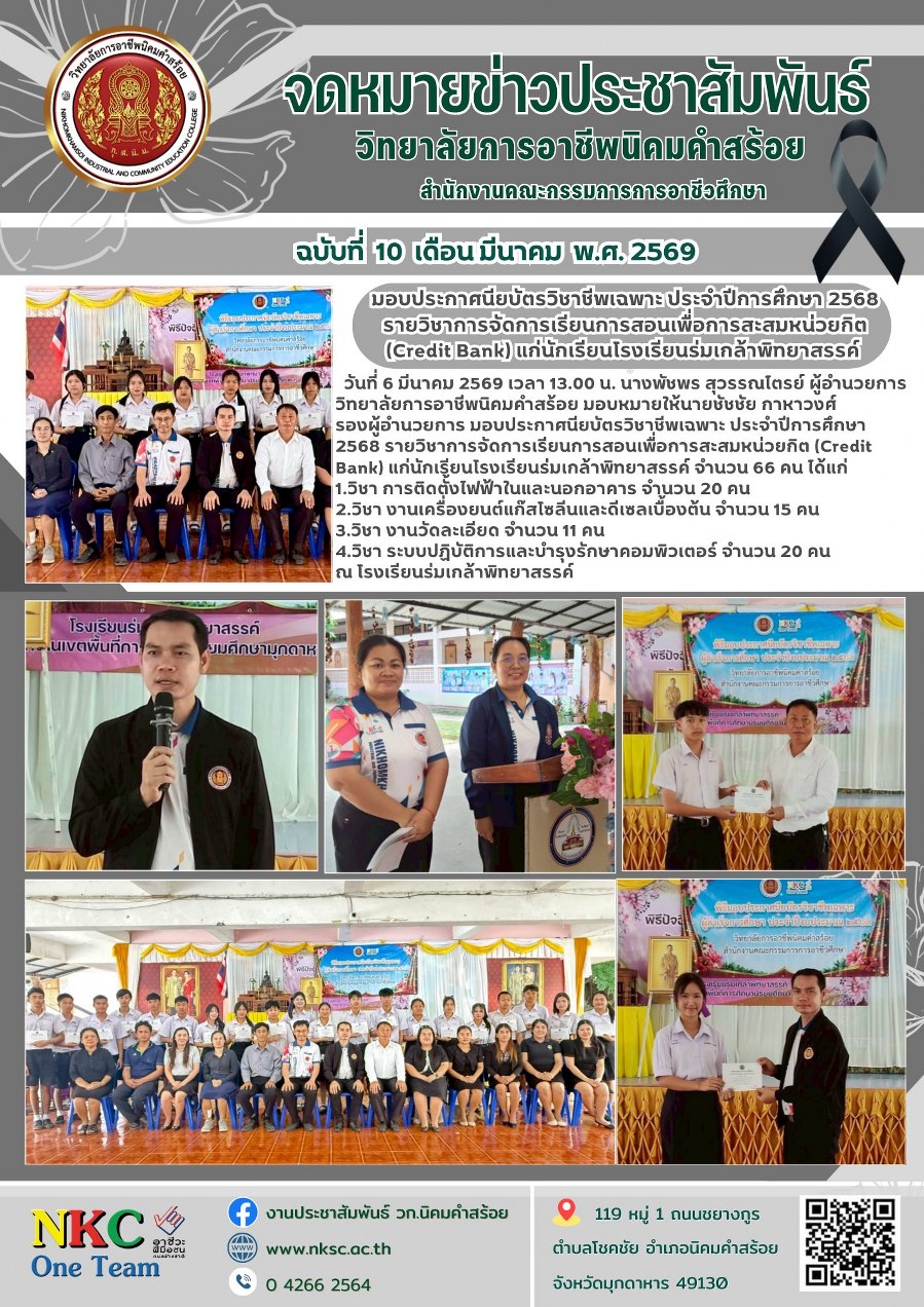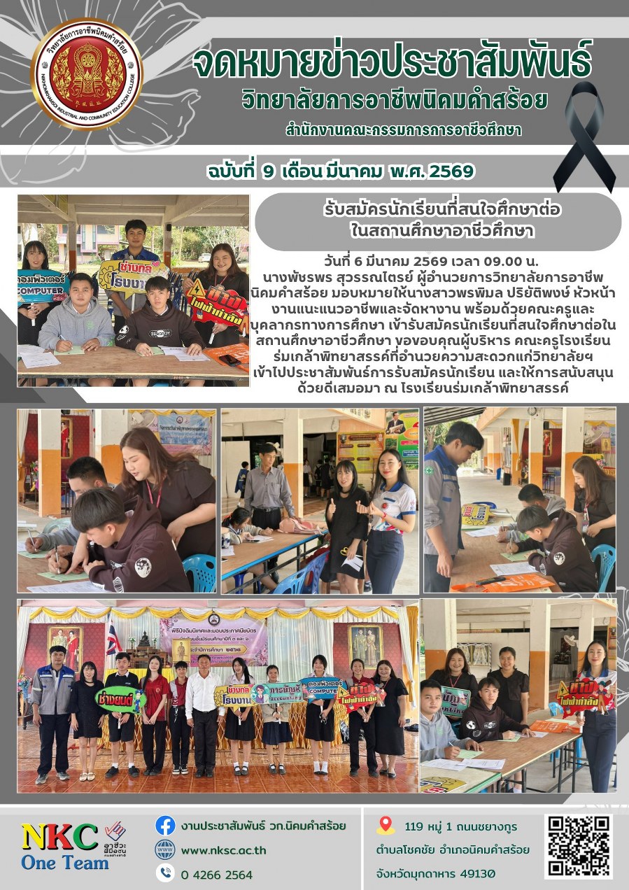 ยินดีต้อนรับเข้าสู่เว็บไซต์ วิทยาลัยการอาชีพนิคมคำสร้อย