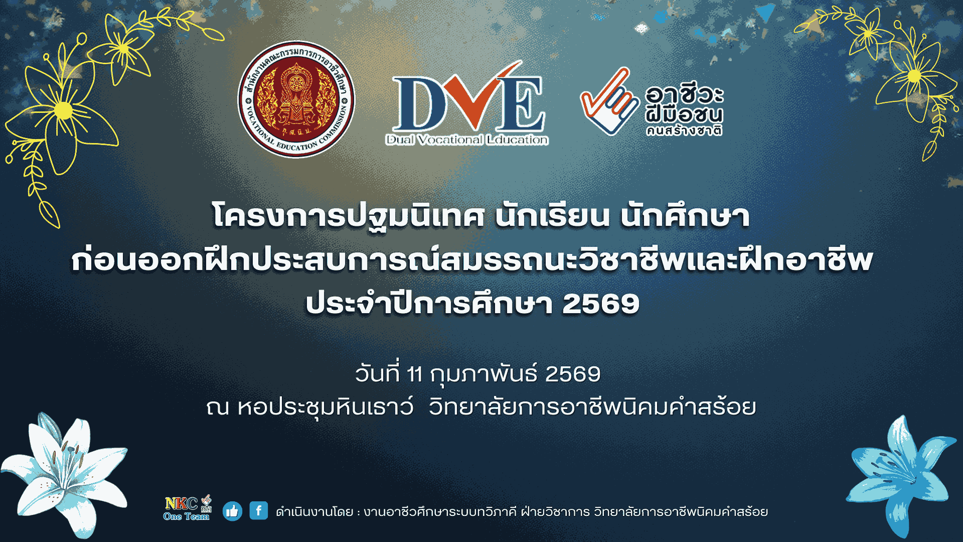 โครงการปฐมนิเทศ นักเรียน นักศึกษา ก่อนออกฝึกประสบการณ์สมรรถนะวิชาชีพและฝึกอาชีพ