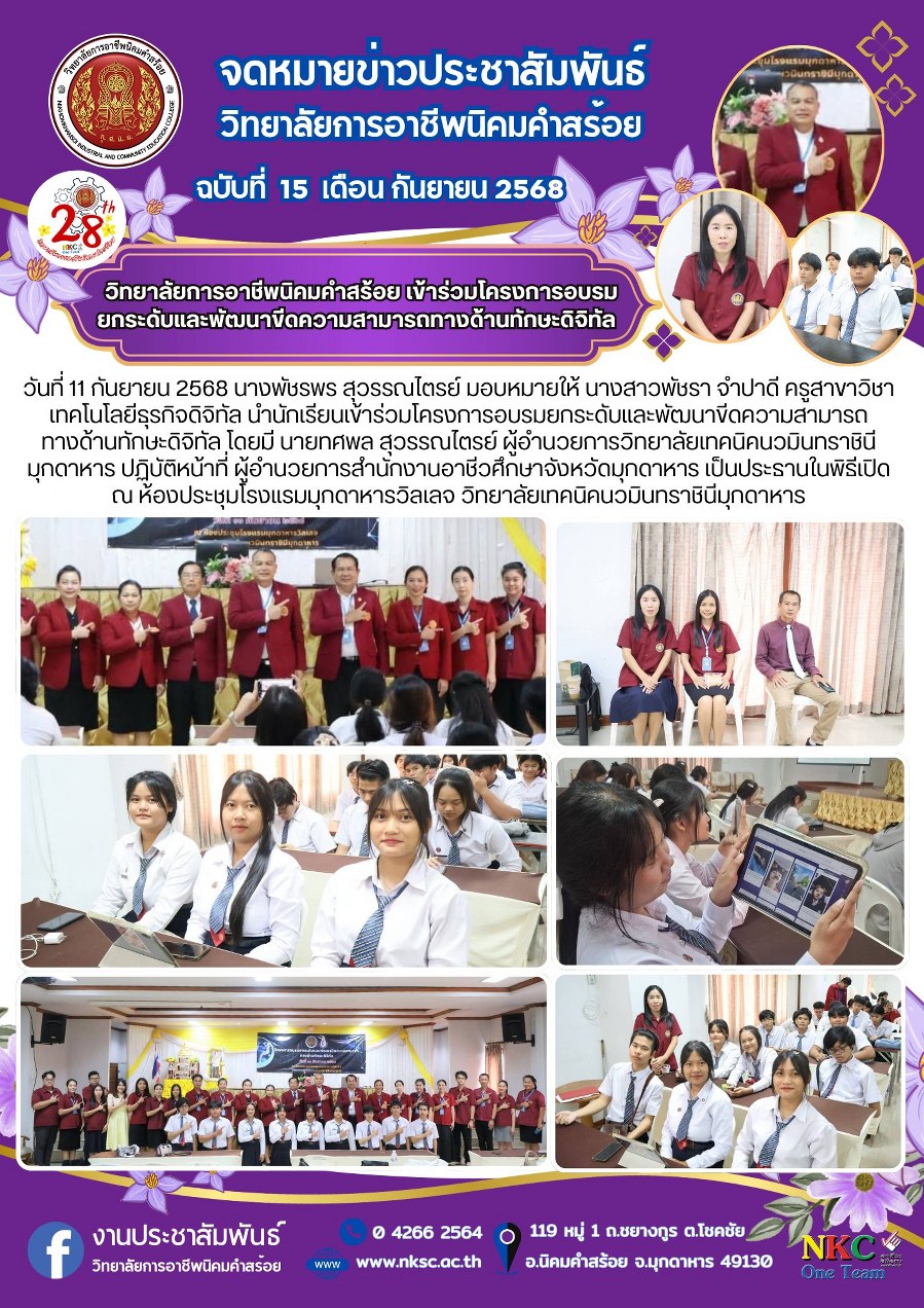 ฉบับที่ 15 ก.ย. 2568 ร่วมโครงการอบรมยกระดับและพัฒนาขีดความสามารถทางด้านทักษะดิจิทัล