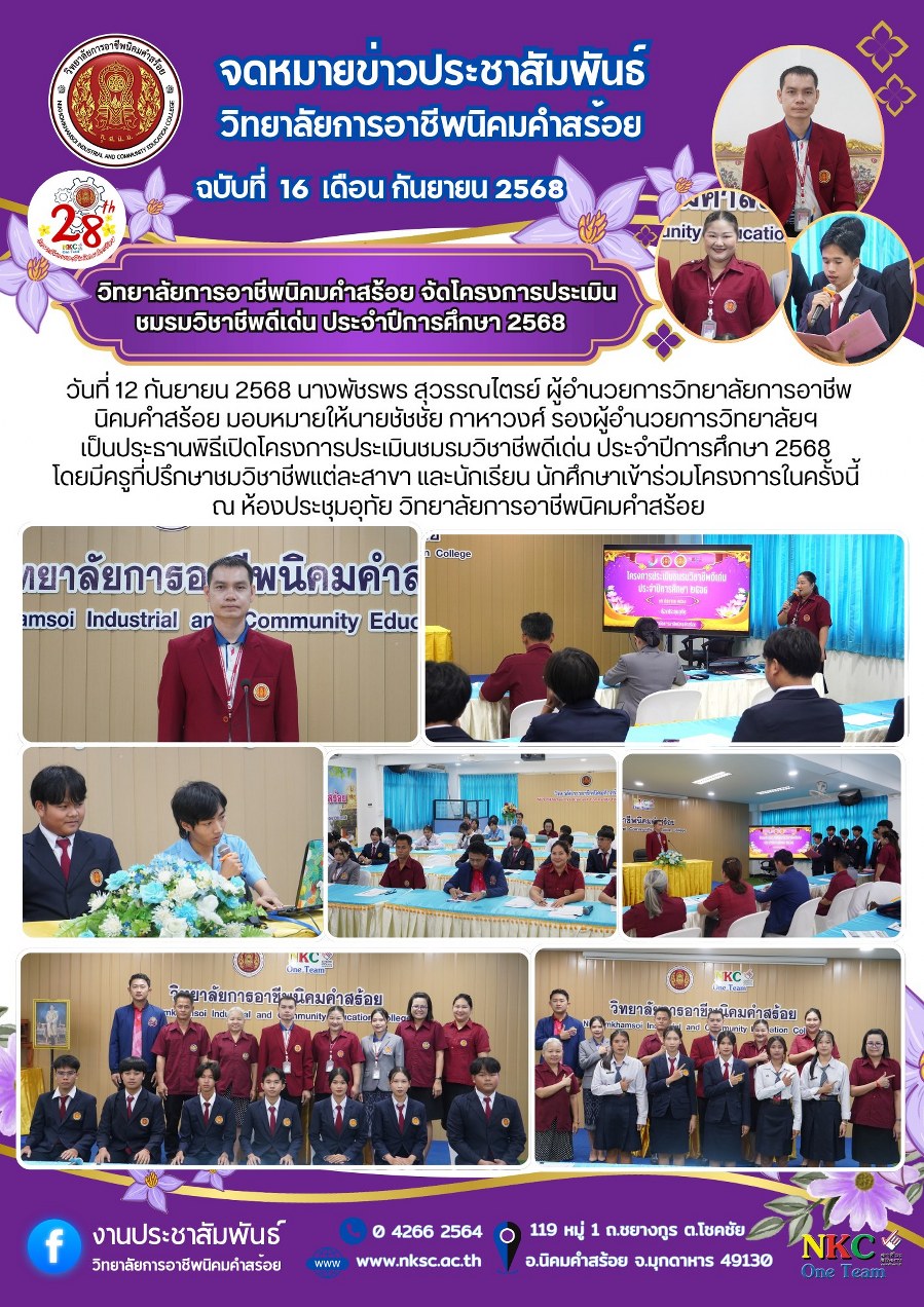 ฉบับที่ 16 ก.ย. 2568 โครงการประเมินชมรมวิชาชีพดีเด่น ประจำปีการศึกษา 2568