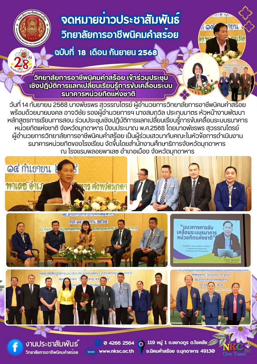 ฉบับที่ 18 ก.ย. 2568 ประชุมเชิงปฏิบัติการแลกเปลี่ยนเรียนรู้การขับเคลื่อนระบบธนาคารหน่วยกิตแห่งชาติ