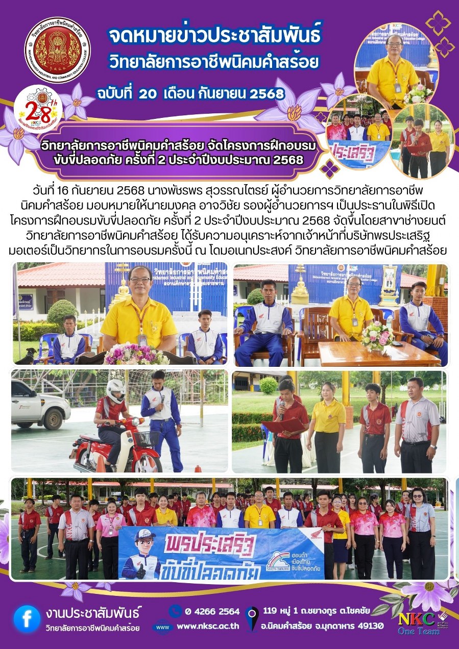 ฉบับที่ 20 ก.ย. 2568 โครงการฝึกอบรมขับขี่ปลอดภัย ครั้งที่ 2 ประจำปีงบประมาณ 2568
