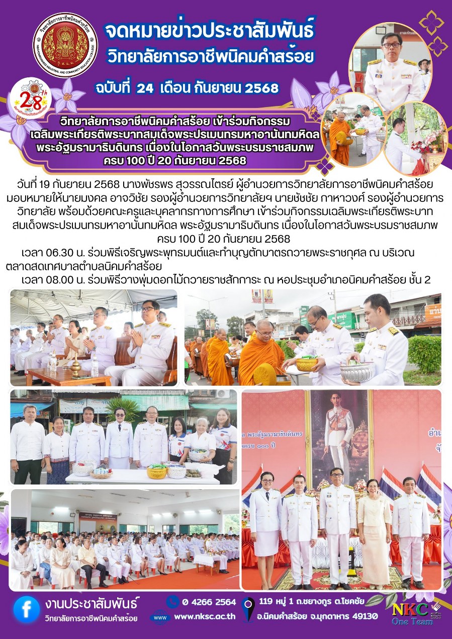 ฉบับที่ 24 ก.ย. 2568 กิจกรรมเฉลิมพระเกียรติพระบาทสมเด็จพระปรเมนทรมหาอานันทมหิดล ฯ