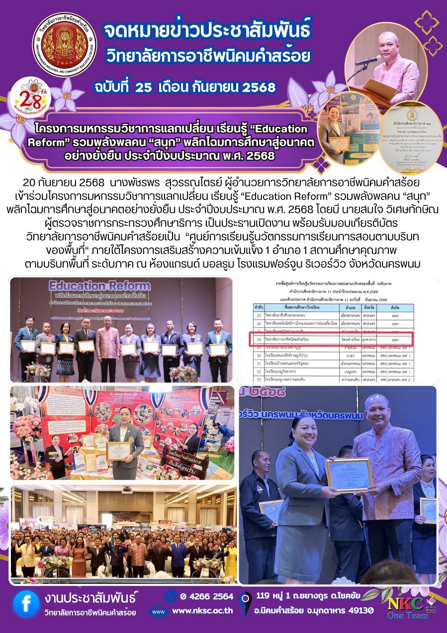 ฉบับที่ 25 ก.ย. 2568 โครงการมหกรรมวิชาการแลกเปลี่ยน เรียนรู้ “Education Reform”