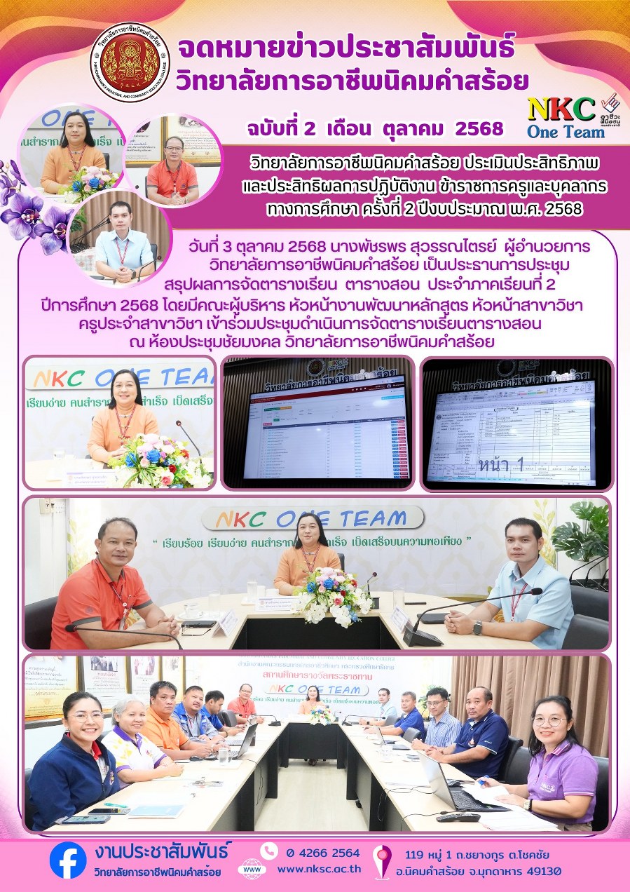 ฉบับที่ 2 ต.ค. 2568 การประชุมสรุปผลการจัดตารางเรียน ตารางสอน ประจำภาคเรียนที่ 2 ปีการศึกษา 2568