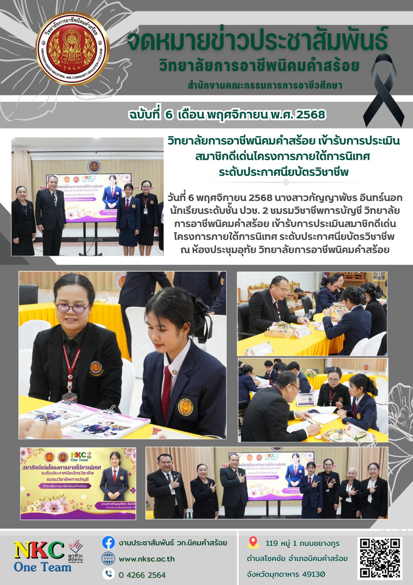 ฉบับที่ 6 พ.ย. 2568 การประเมินสมาชิกดีเด่นโครงการภายใต้การนิเทศ ระดับประกาศนียบัตรวิชาชีพ