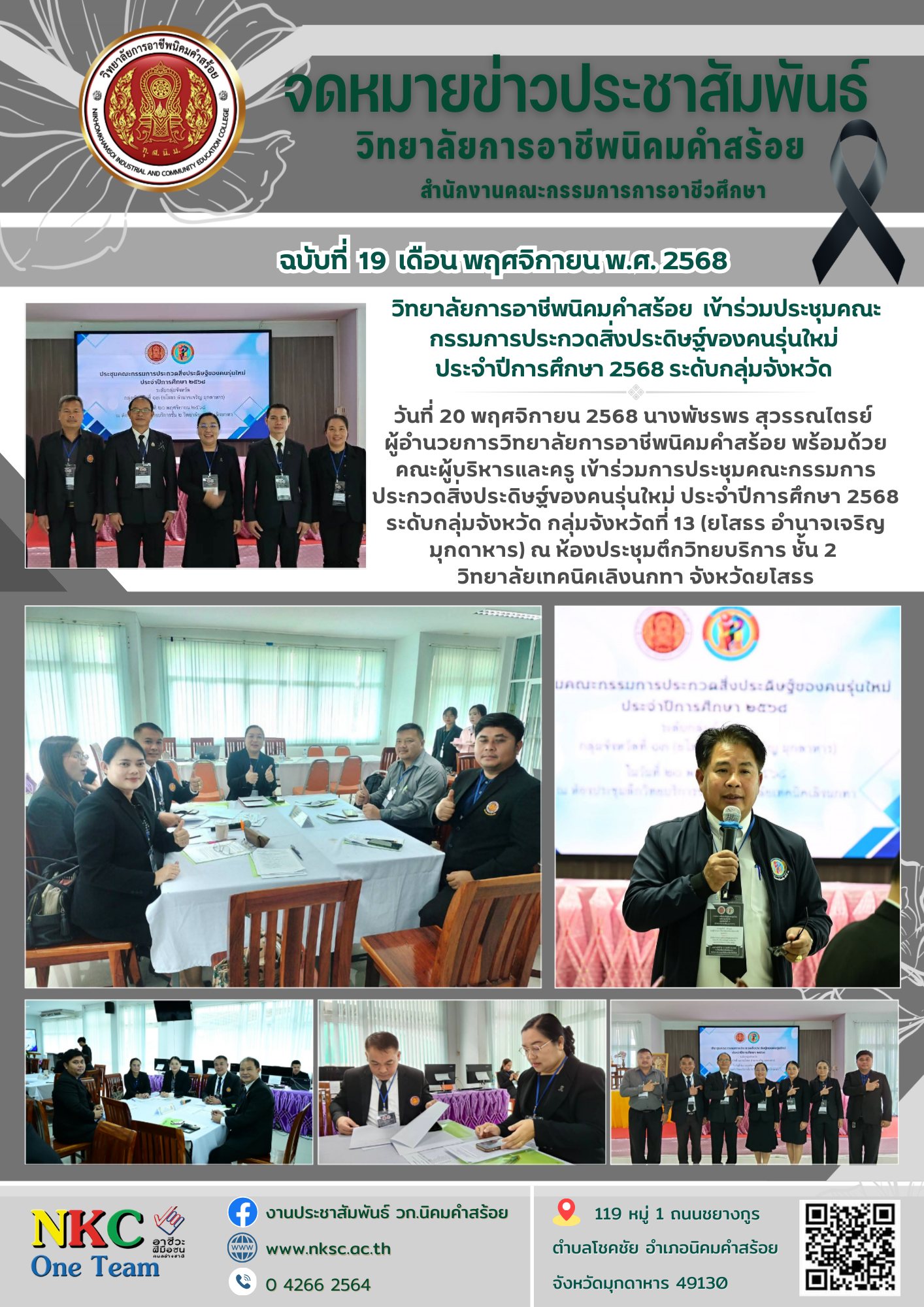 ฉบับที่ 19 พ.ย. 2568 การประชุมคณะกรรมการประกวดสิ่งประดิษฐ์ของคนรุ่นใหม่ ระดับกลุ่มจังหวัด