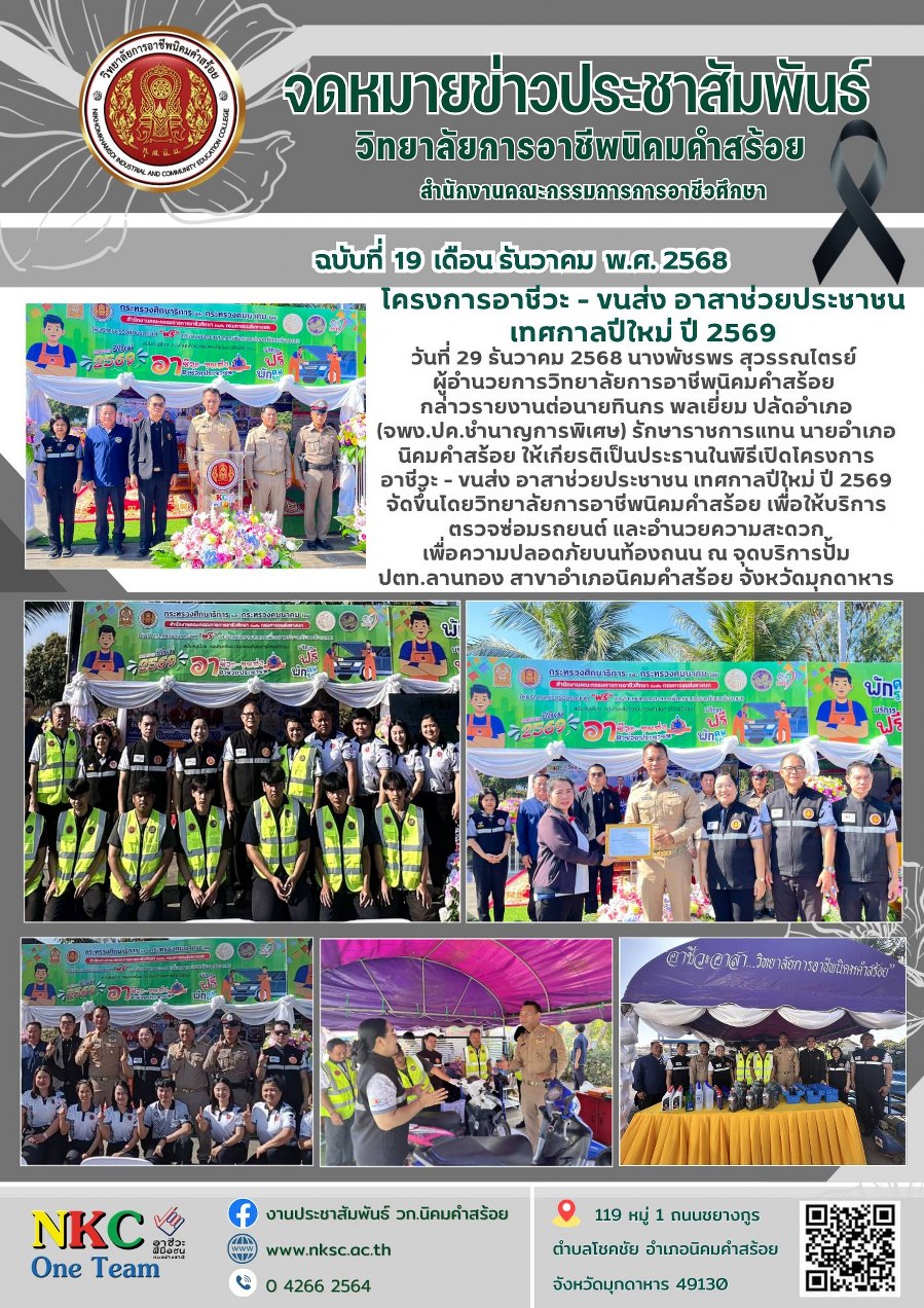 ฉบับที่ 19 ธ.ค. 2568 พิธีเปิดโครงการอาชีวะ - ขนส่ง อาสาช่วยประชาชน เทศกาลปีใหม่ ปี 2569
