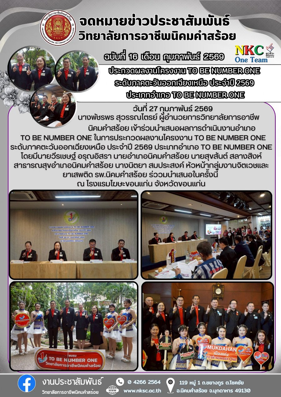 ฉบับที่ 16 ก.พ. 2569 การประกวดผลงานโครงงาน TO BE NUMBER ONE ระดับภาคตะวันออกเฉียงเหนือ
