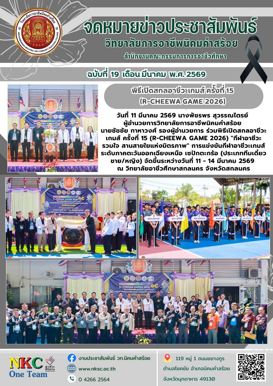 ฉบับที่ 19 มี.ค. 2569 ร่วมพิธีเปิดสกลอาชีวะเกมส์ ครั้งที่ 15 "กีฬาอาชีวะรวมใจ สานสายใยแห่งมิตรภาพ"