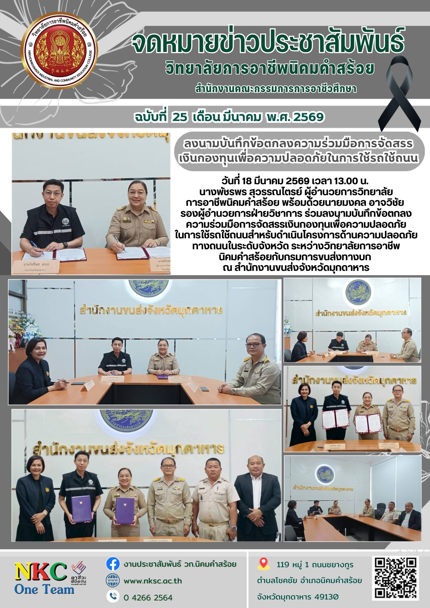 ฉบับที่ 25 มี.ค. 2569 ลงนามบันทึกข้อตกลงความร่วมมือ เพื่อความปลอดภัยในการใช้รถใช้ถนน
