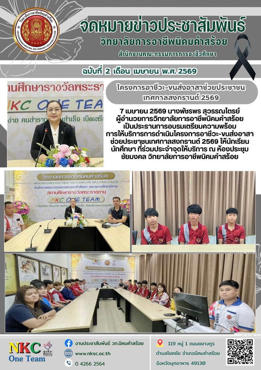 ฉบับที่ 2 เม.ย. 2569 การอบรมเตรียมความพร้อมการให้บริการการดำเนินโครงการอาชีวะ-ขนส่งอาสา ฯ