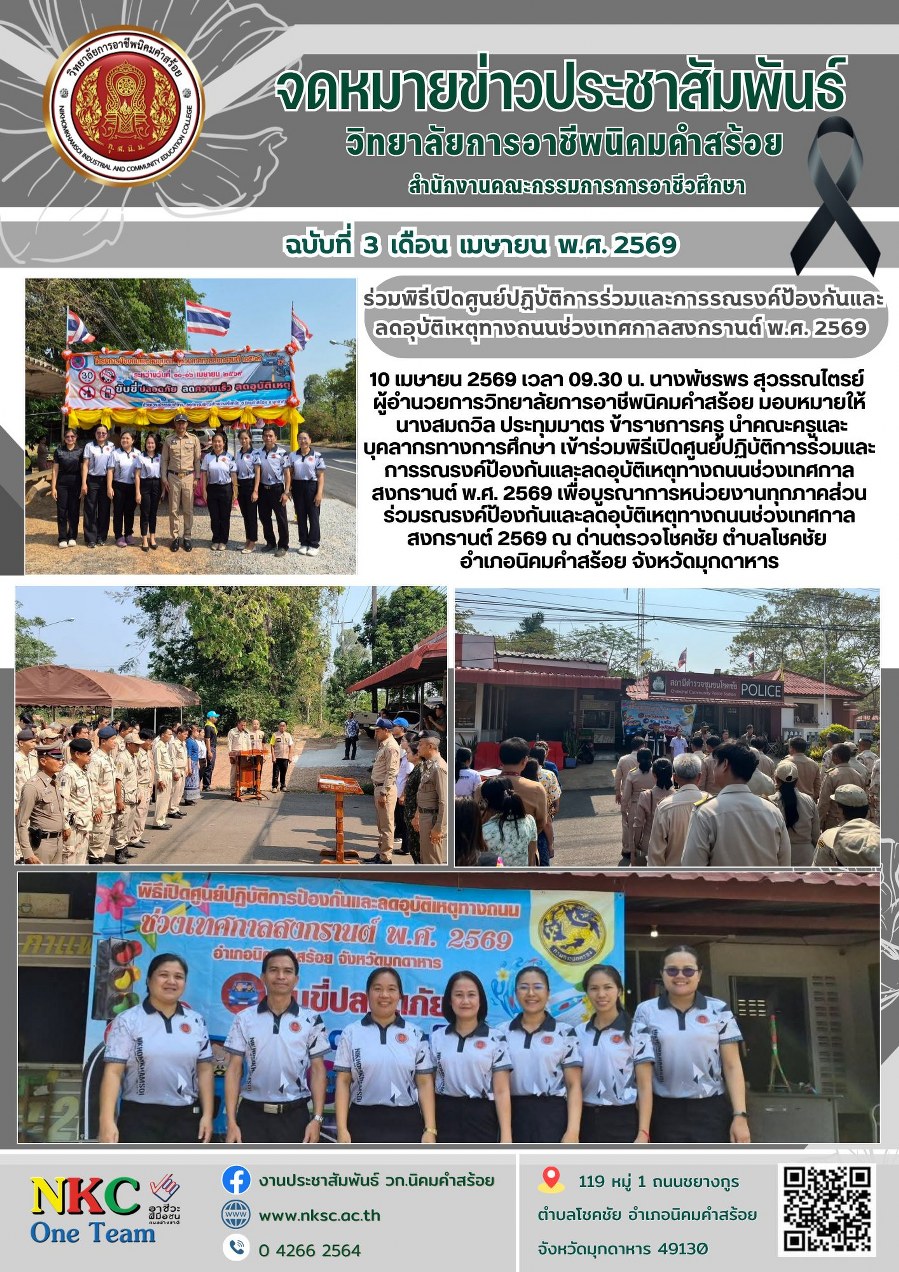 ฉบับที่ 3 เม.ย. 2569 พิธีเปิดศูนย์ปฏิบัติการร่วมและการรณรงค์ป้องกันและลดอุบัติเหตุทางถนน