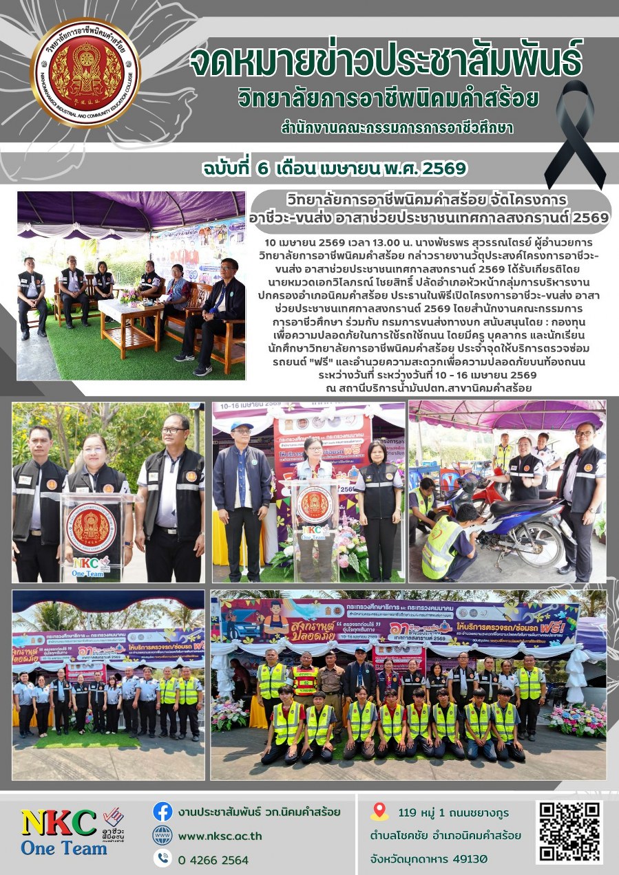 ฉบับที่ 6 เม.ย. 2569 พิธีเปิดโครงการอาชีวะ-ขนส่ง อาสาช่วยประชาชนเทศกาลสงกรานต์ 2569