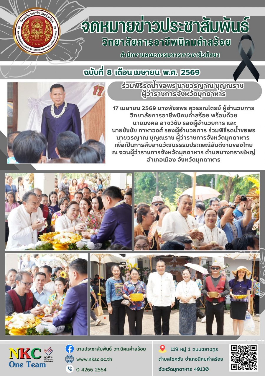 ฉบับที่ 8 เม.ย. 2569 พิธีรดน้ำขอพร นายวรญาณ บุญณราช ผู้ว่าราชการจังหวัดมุกดาหาร