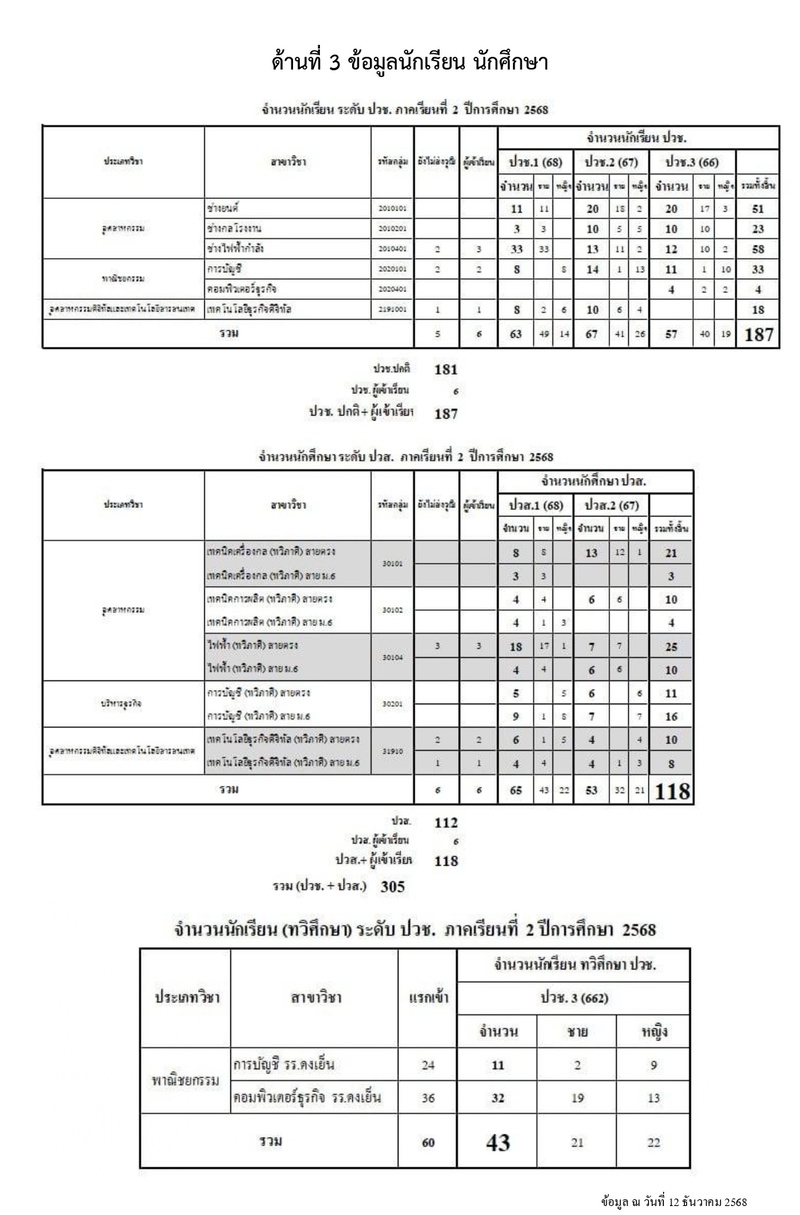 ข้อมูลนักเรียน นักศึกษา 2/2568