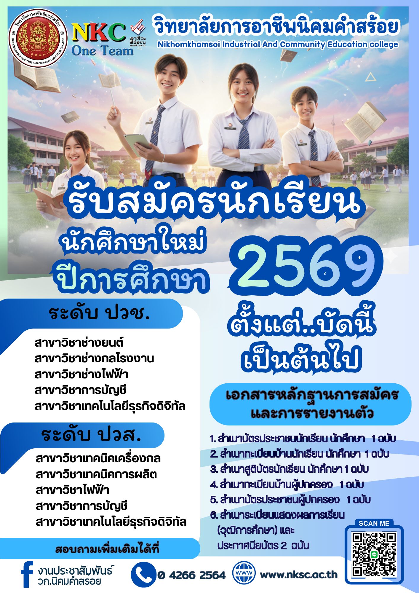 รับสมัครนักเรียน นักศึกษา ใหม่ ปีการศึกษา 2569