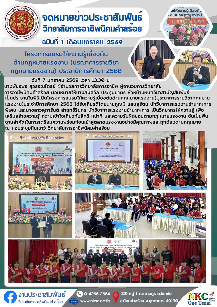 ฉบับที่ 1 ม.ค. 2569 โครงการอบรมให้ความรู้เบื้องต้นด้านกฎหมายแรงงาน