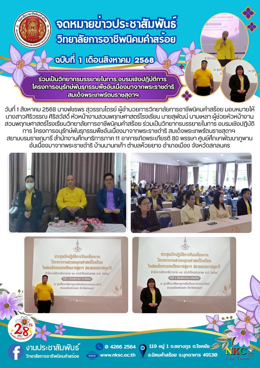 ฉบับที่ 1 ส.ค. 2568 วิทยากรบรรยาย โครงการอนุรักษ์พันธุกรรมพืชอันเนื่องมาจากพระราชดำริ