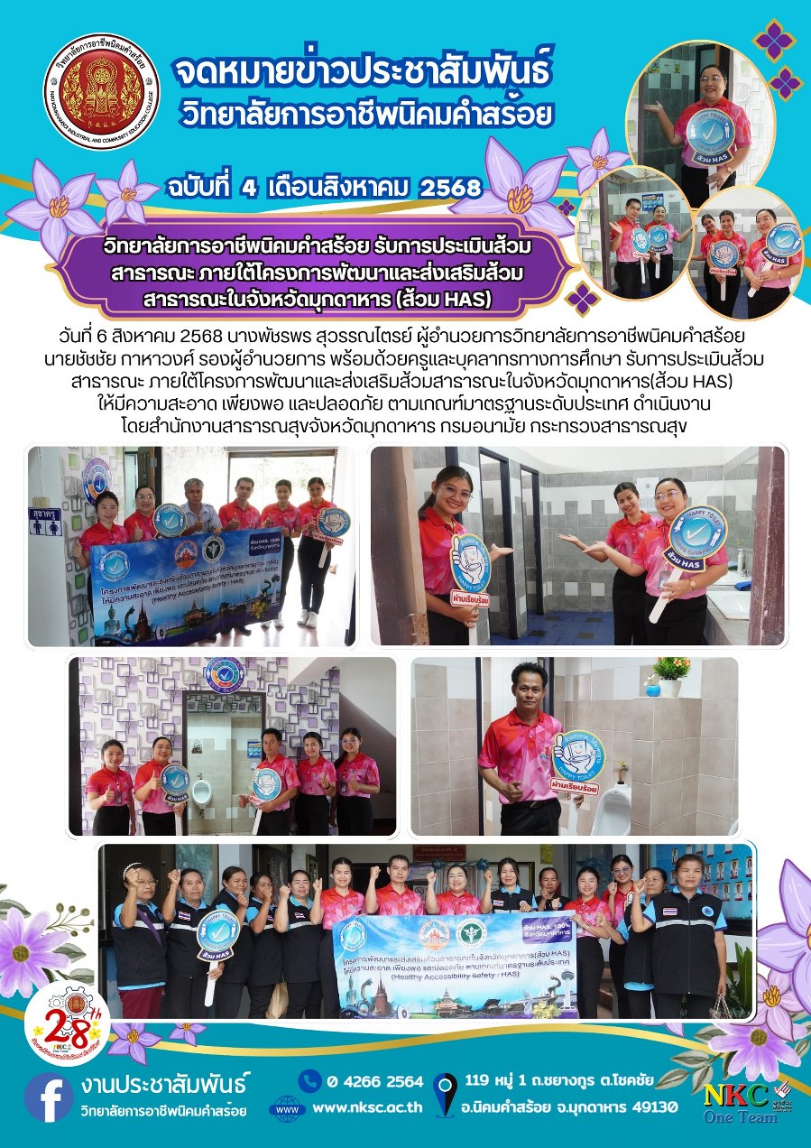 ฉบับที่ 4 ส.ค. 2568 การประเมินส้วมสาธารณะ ภายใต้โครงการพัฒนาและส่งเสริมส้วมสาธารณะในจังหวัด