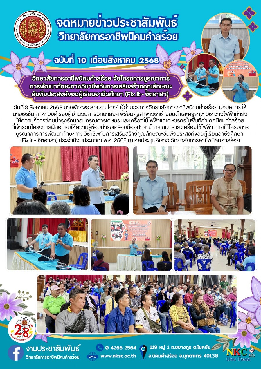 ฉบับที่ 10 ส.ค. 2568 โครงการฝึกอบรม Fix it - จิตอาสา ณ หอประชุมหินเธาว์