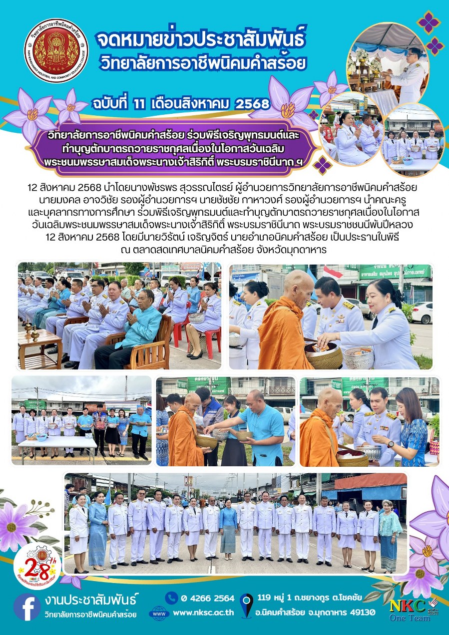 ฉบับที่ 11 ส.ค. 2568 พิธีเจริญพุทธมนต์และทำบุญตักบาตรถวายราชกุศลฯ 12 สิงหาคม 2568