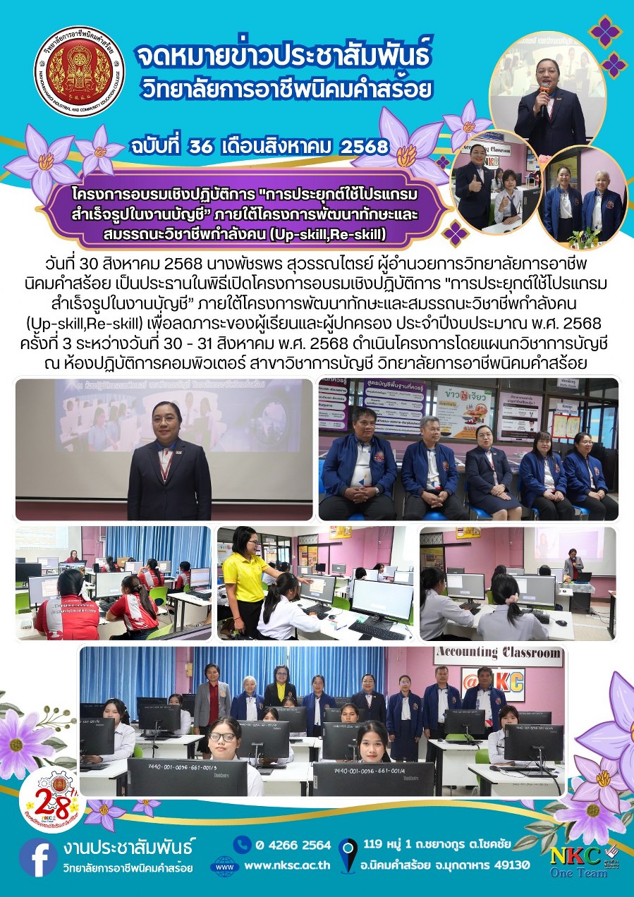 ฉบับที่ 36 ส.ค. 2568 โครงการอบรมเชิงปฏิบัติการ "การประยุกต์ใช้โปรแกรมสำเร็จรูปในงานบัญชี”
