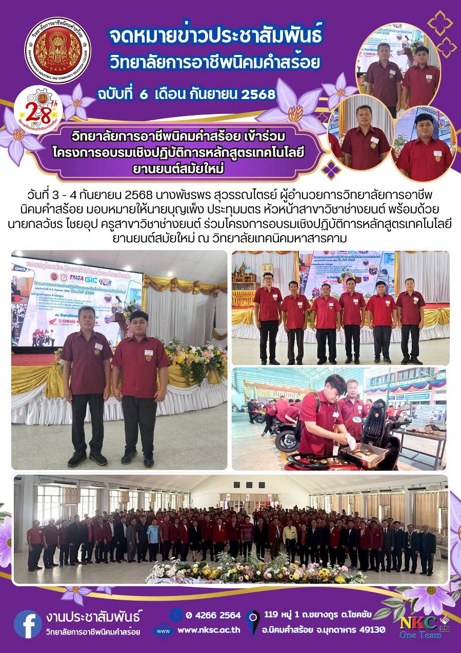 ฉบับที่ 6 ก.ย. 2568 โครงการอบรมเชิงปฏิบัติการหลักสูตรเทคโนโลยียานยนต์สมัยใหม่