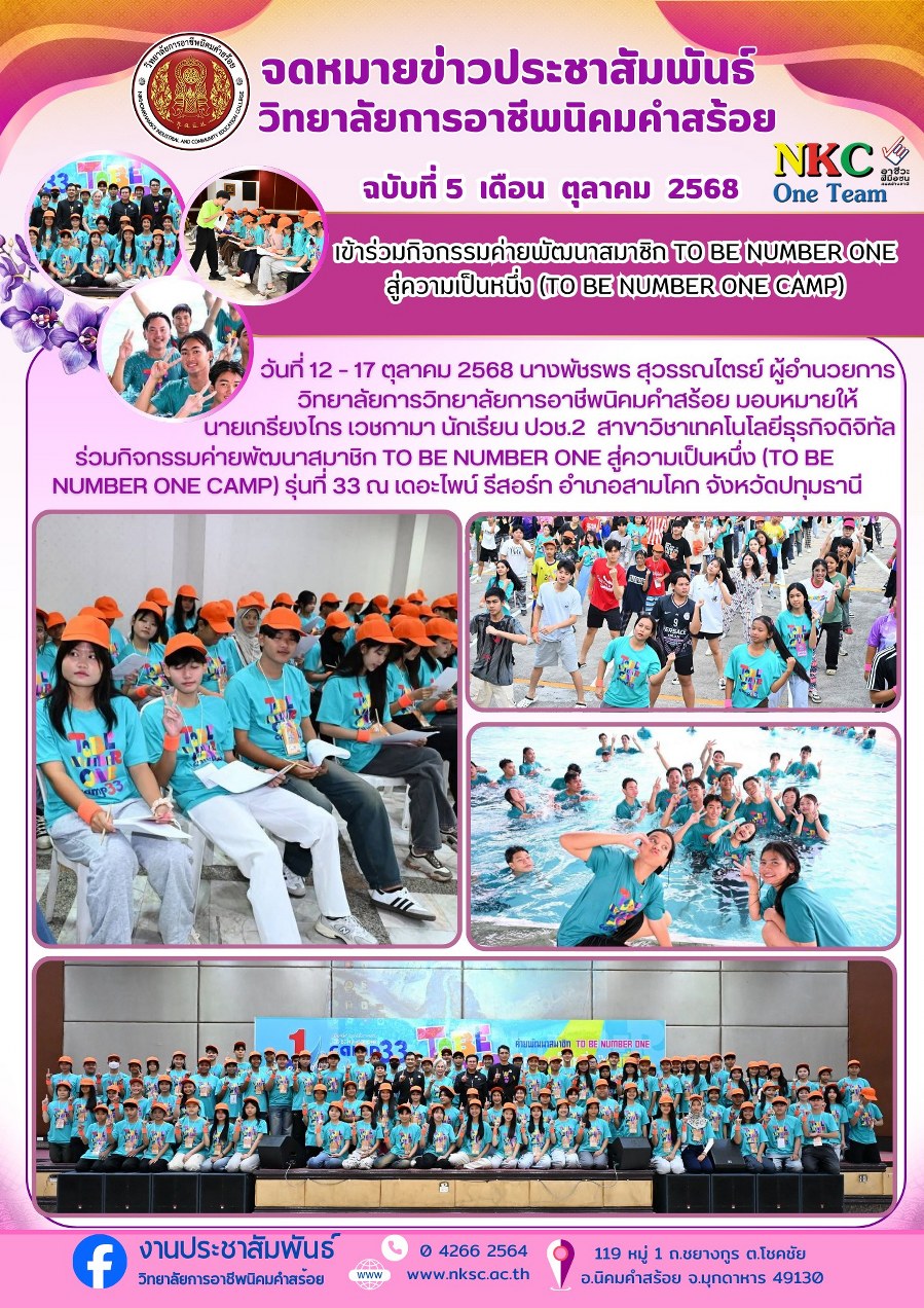 ฉบับที่ 5 ต.ค. 2568 นักเรียน ปวช.2 เทคโนโลยีธุรกิจดิจิทัล ร่วมกิจกรรมค่าย TO BE NUMBER ONE