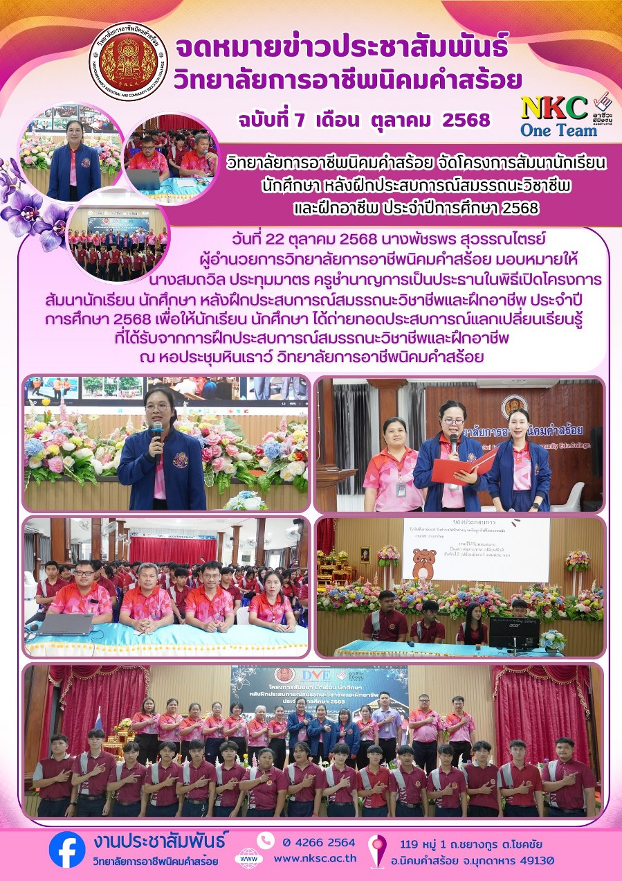 ฉบับที่ 7 ต.ค. 2568 โครงการสัมนานักเรียน นักศึกษา หลังฝึกประสบการณ์สมรรถนะวิชาชีพและฝึกอาชีพ
