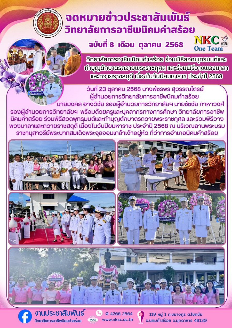 ฉบับที่ 8 ต.ค. 2568 พิธีสวดพุทธมนต์ฯ และพิธีวางพวงมาลาและถวายราชสดุดีวันปิยมหาราช
