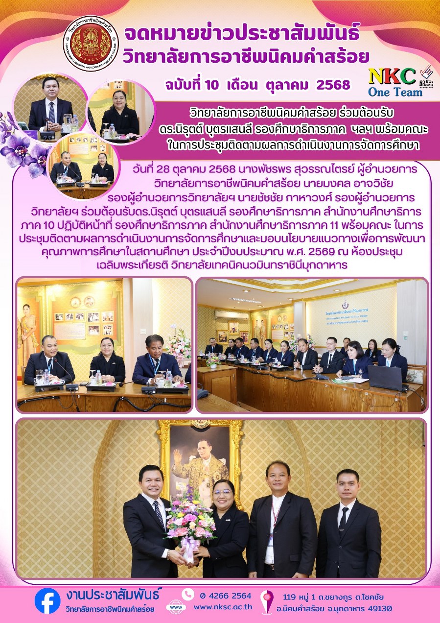 ฉบับที่ 10 ต.ค. 2568 ต้อนรับ ดร.นิรุตต์ บุตรแสนลี รองศึกษาธิการภาค สำนักงานศึกษาธิการภาค 10