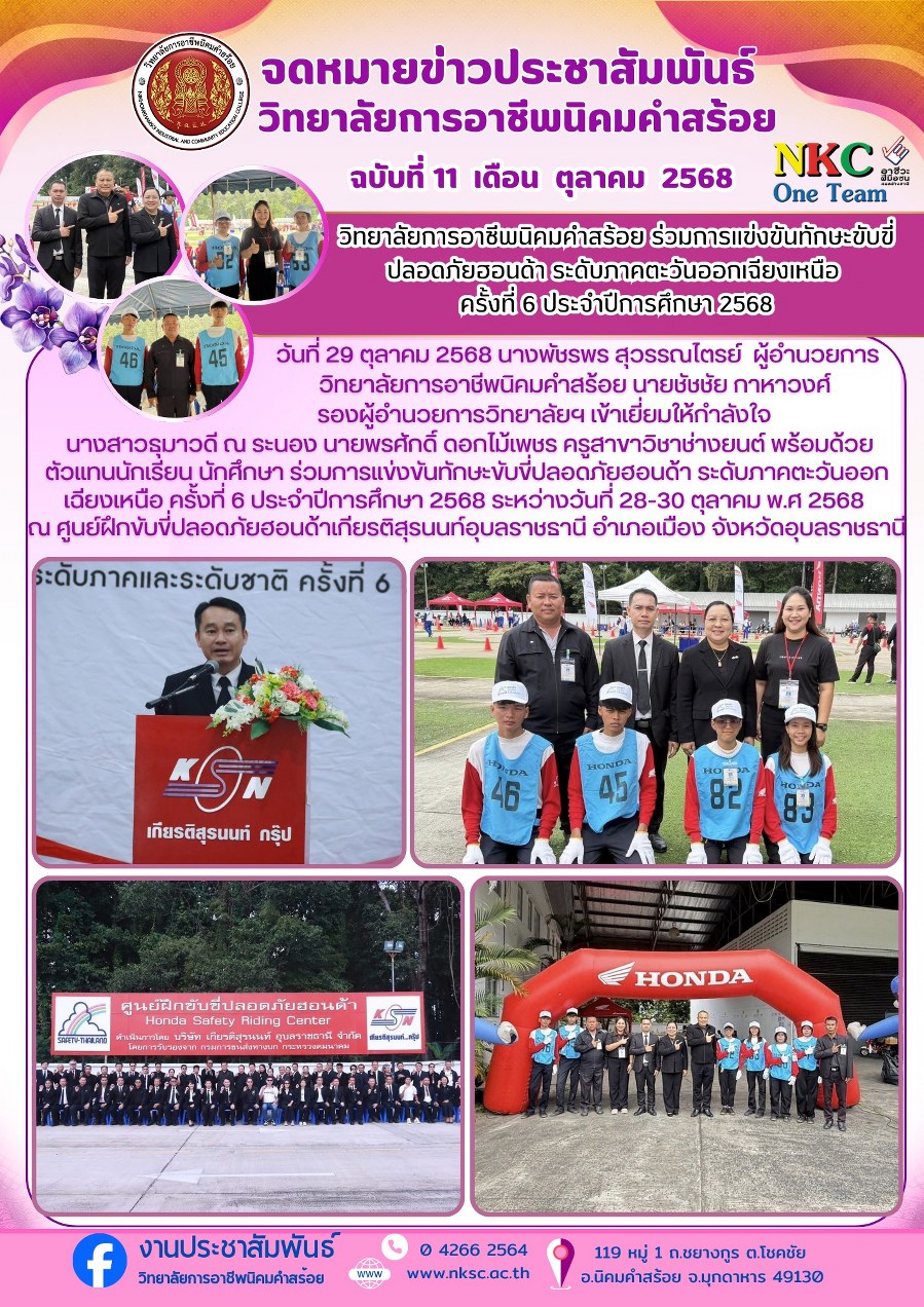 ฉบับที่ 11 ต.ค. 2568 การแข่งขันทักษะขับขี่ปลอดภัยฮอนด้า ระดับภาคตะวันออกเฉียงเหนือ ครั้งที่ 6