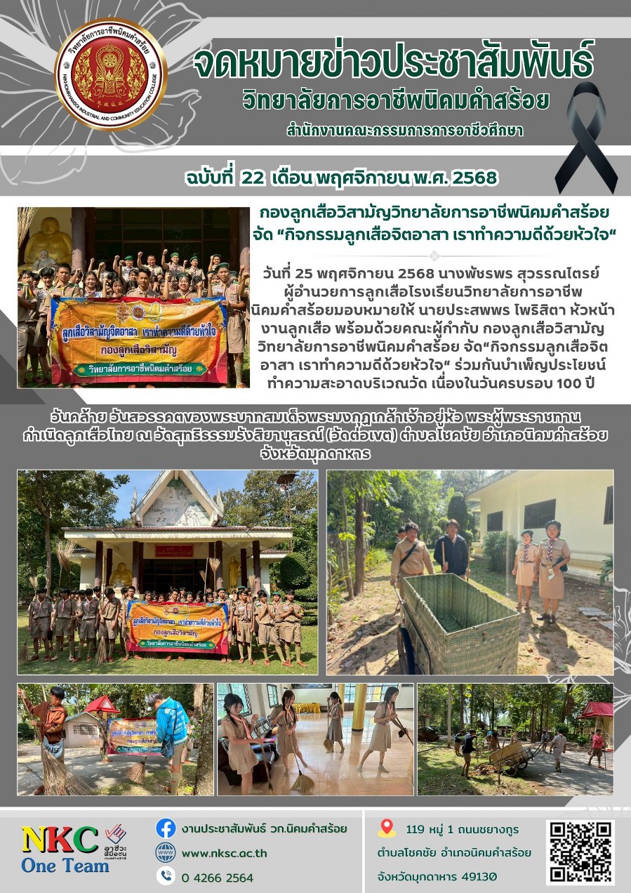 ฉบับที่ 22 พ.ย. 2568 กิจกรรมลูกเสือจิตอาสา เราทำความดีด้วยหัวใจ ณ วัดสุทธิธรรมรังสิยานุสรณ์