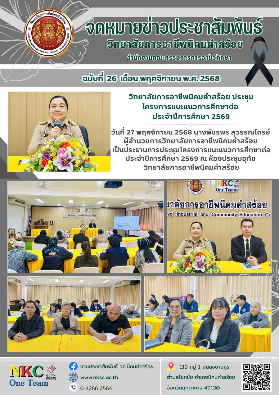 ฉบับที่ 26 พ.ย. 2568 การประชุมโครงการแนะแนวการศึกษาต่อ ประจำปีการศึกษา 2569