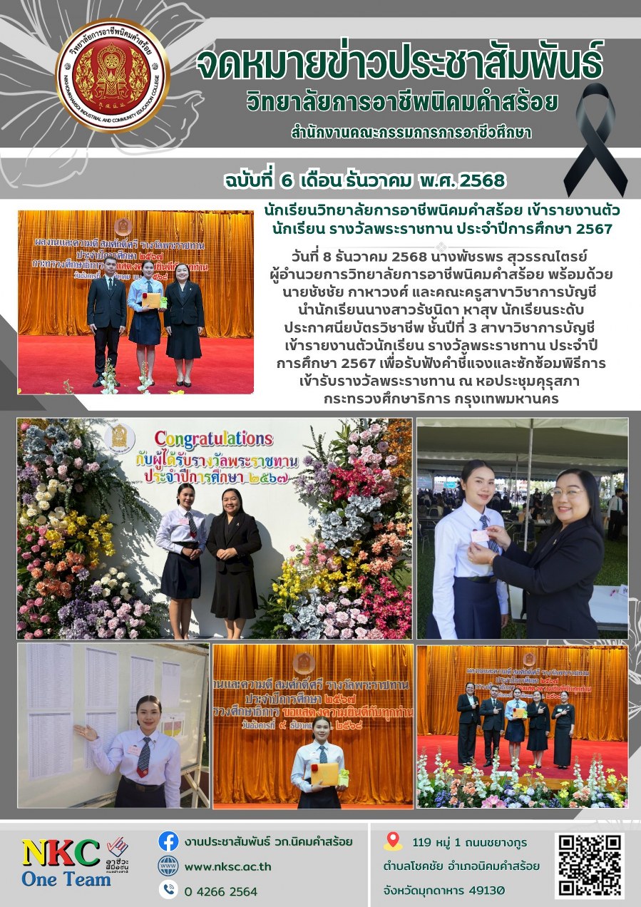 ฉบับที่ 6 ธ.ค. 2568 รายงานตัวนักเรียน รางวัลพระราชทาน ประจำปีการศึกษา 2567