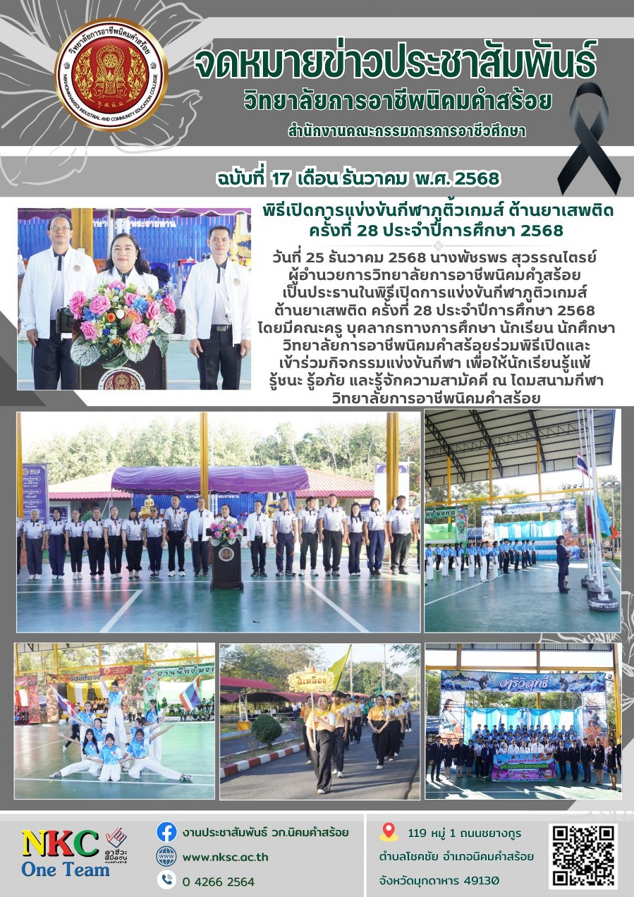 ฉบับที่ 17 ธ.ค. 2568 การแข่งขันกีฬาภูติ้วเกมส์ ต้านยาเสพติด ครั้งที่ 28 ประจำปีการศึกษา 2568
