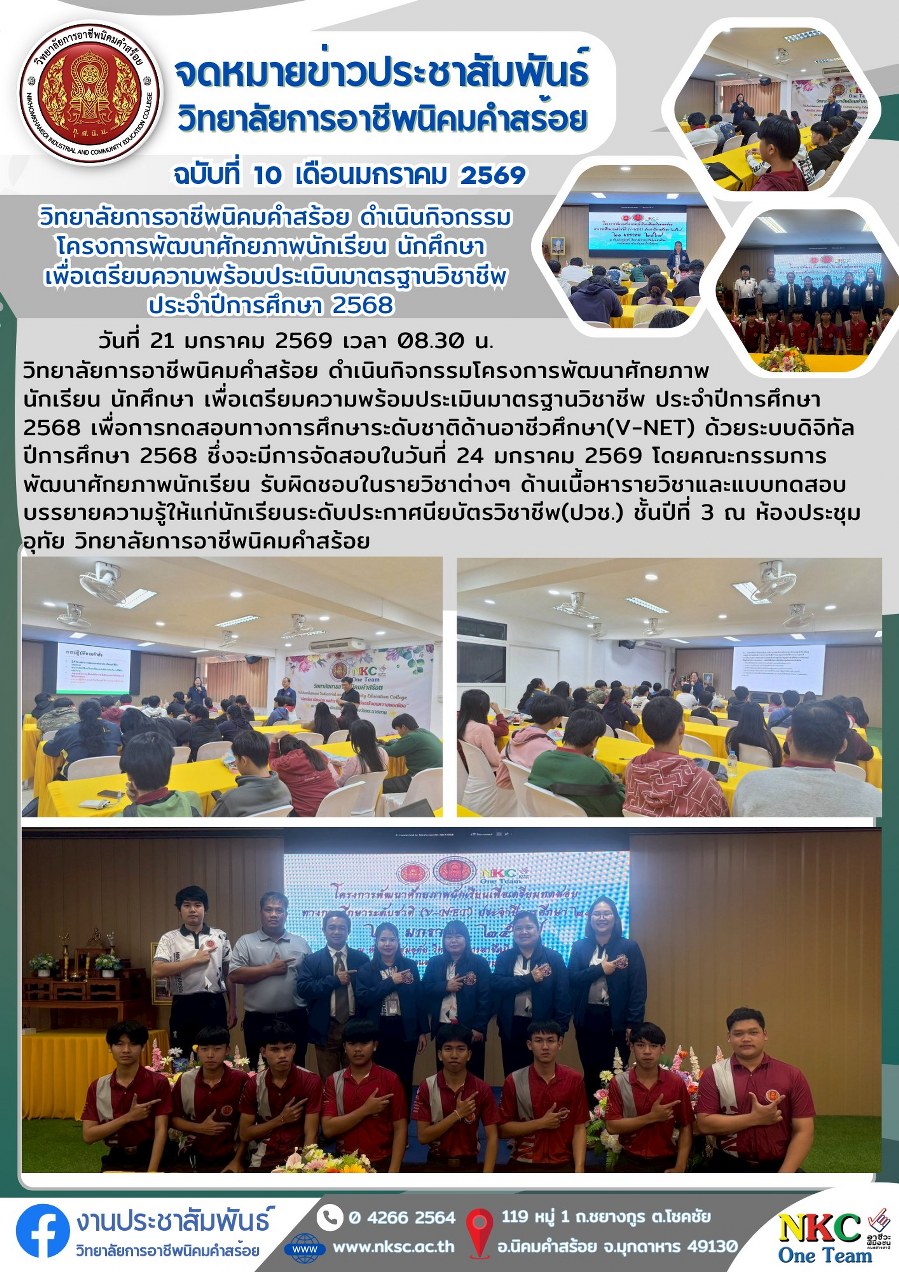 ฉบับที่ 10 ม.ค. 2569 โครงการพัฒนาศักยภาพนักเรียน นักศึกษา เพื่อเตรียมความพร้อม การทดสอบ V-NET