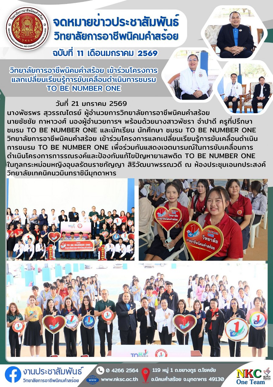 ฉบับที่ 11 ม.ค. 2569 โครงการแลกเปลี่ยนเรียนรู้การขับเคลื่อนดำเนินการชมรม TO BE NUMBER ONE