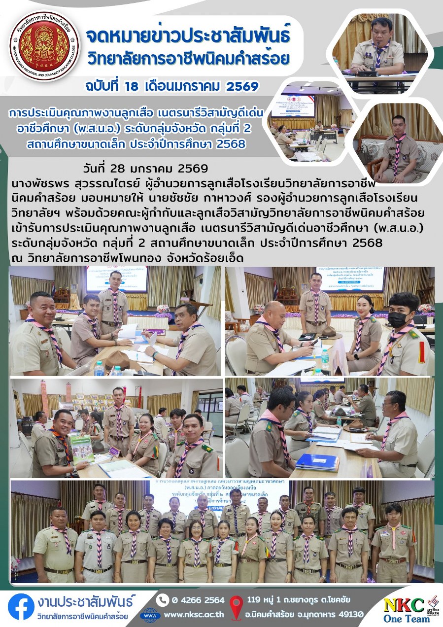 ฉบับที่ 18 ม.ค. 2569 รับการประเมินคุณภาพงานลูกเสือ เนตรนารีวิสามัญดีเด่นอาชีวศึกษา ระดับกลุ่มจังหวัด