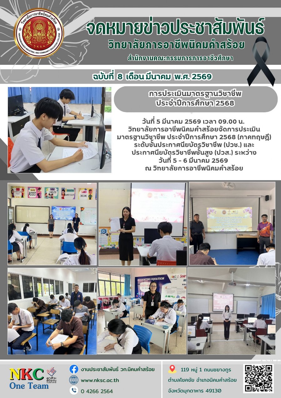 ฉบับที่ 8 มี.ค. 2569 การประเมินมาตรฐานวิชาชีพ ประจำปีการศึกษา 2568 (ภาคทฤษฎี)