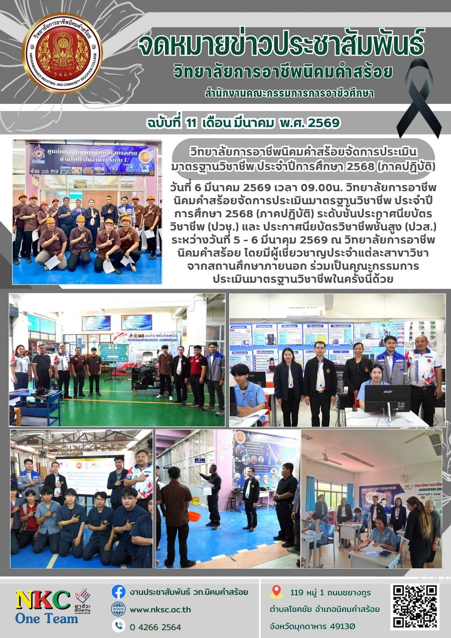 ฉบับที่ 11 มี.ค. 2569 การประเมินมาตรฐานวิชาชีพ ประจำปีการศึกษา 2568 (ภาคปฏิบัติ)