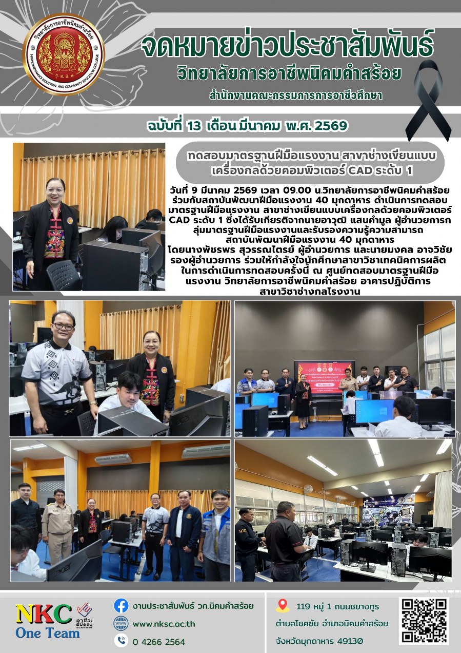 ฉบับที่ 13 มี.ค. 2569 การทดสอบมาตรฐานฝีมือแรงงาน สาขาช่างเขียนแบบเครื่องกลด้วยคอมพิวเตอร์ CAD