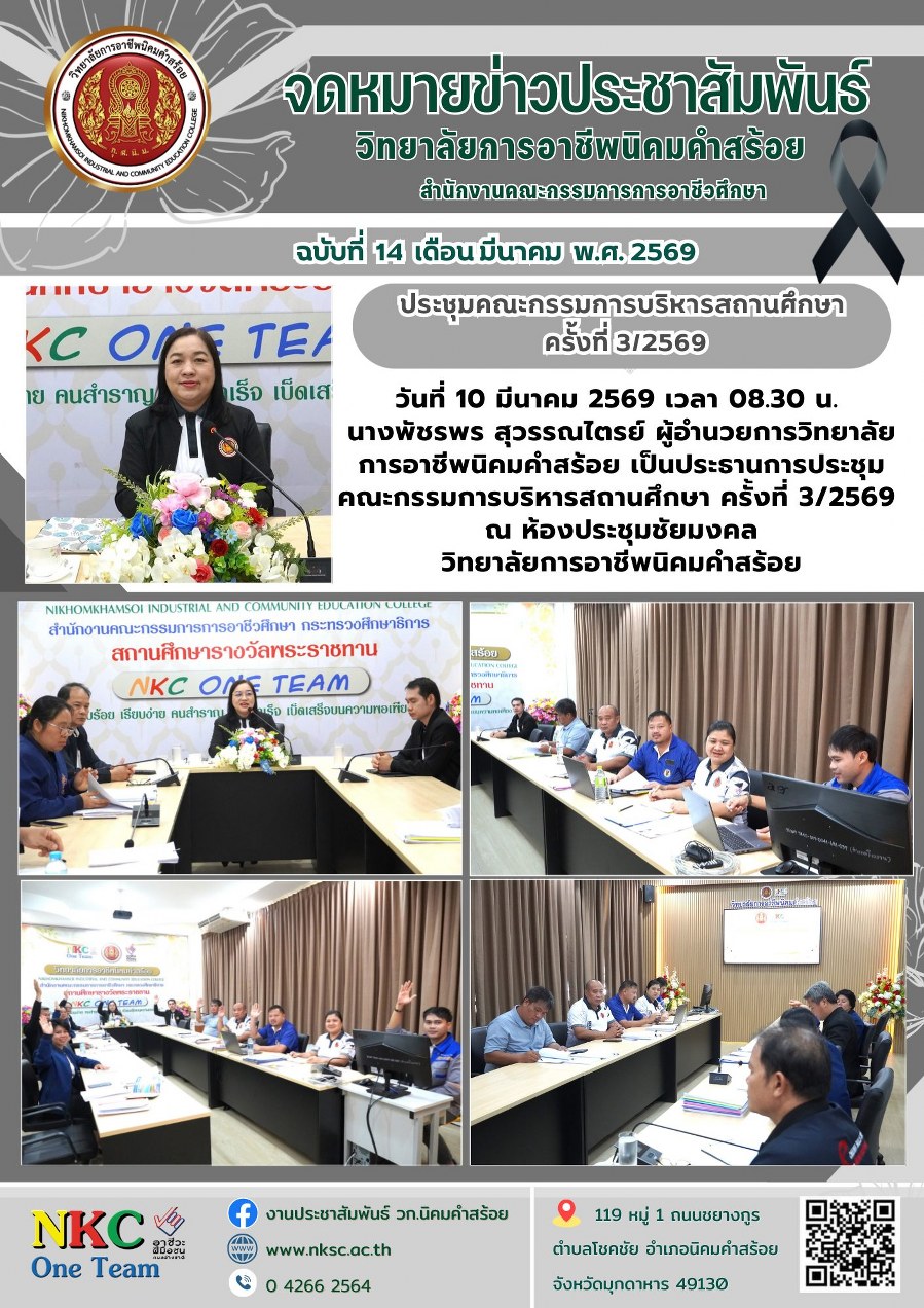 ฉบับที่ 14 มี.ค. 2569 ประชุมคณะกรรมการบริหารสถานศึกษา ครั้งที่ 3/2569 ณ ห้องประชุมชัยมงคล