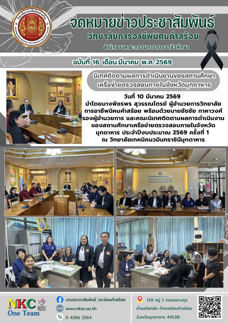 ฉบับที่ 16 มี.ค. 2569 ติดตามผลการดำเนินงานของสถานศึกษาเครือข่ายตรวจสอบภายใน วท.นวมินทราชินีฯ