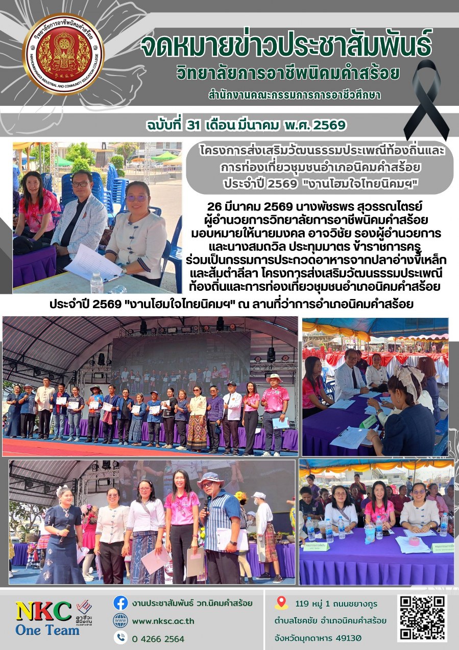 ฉบับที่ 31 มี.ค. 2569 กรรมการประกวดอาหารจากปลาอ่างขี้เหล็กและส้มตำลีลา งานโฮมใจไทยนิคมฯ